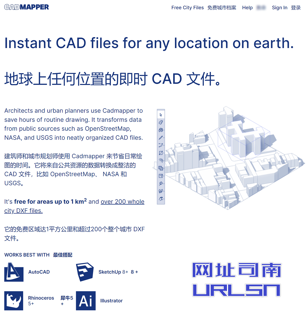 将来自 NASA、USGS 和 OpenStreetMap 等公共来源的数据转换为 CAD 文件。 📌特点:英文、多数免费无需登录、部分需登录、部分收费(教育免费)