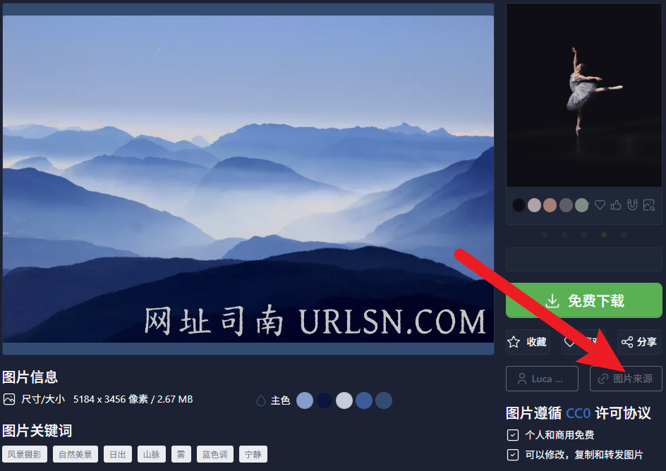 因为此网站的图片资源都采集于其它站点,因此每张图片都附有来源,我们只需要点击打开源网站即可直接下载了。同时,进入源站下载图片也能验证资源是否已经失效。