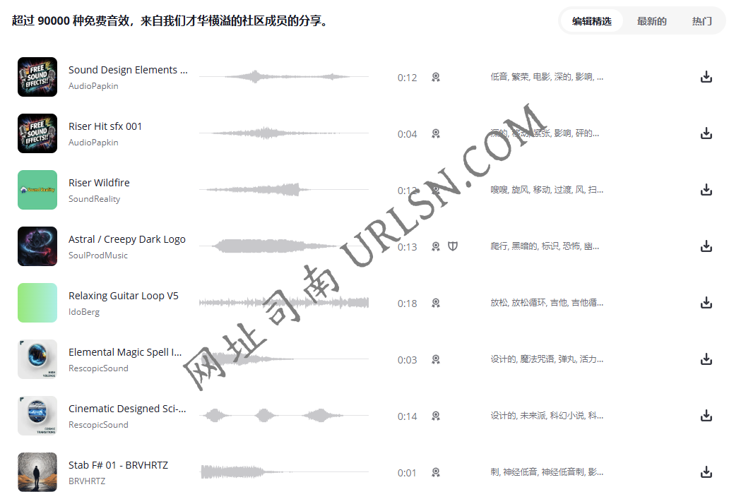 免费商用音效库,超过 90000 种免费音效,无需注册登录可直接下载