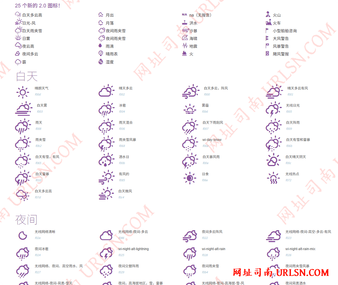 https://erikflowers.github.io/weather-icons/ 天气图标是唯一带有 222 个天气主题图标的图标字体和 CSS,可以直接放入 Bootstrap或任何需要高质量天气、航海和气象图标的项目!